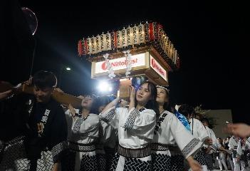当社は、毎年9月中旬に開催される寒河江まつり「神輿の祭典」に、第1回目となる1983年(昭和58年)から参加しています。 第43回となる2025年は、当社から110名の社員が参加、企業神輿の担ぎ手となって祭を大いに盛り上げました。 また、2025年は来場者数も前年の43,800人から54,000人へと、1万人以上増加し、祭全体の盛り上がりを一層感じることができました。
